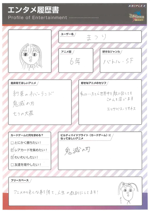 「好きなアニメのセリフ」や「カードゲームに何を求める?」など個性的な履歴書を作成できるページを公開!