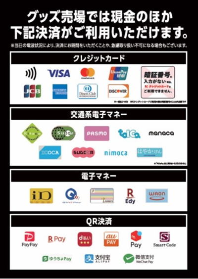 ・お支払い可能な決済手段は以下の通りとなります。